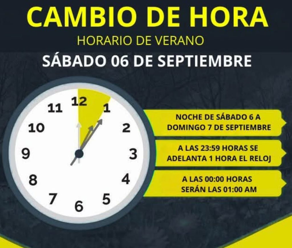⚠️ Se recomienda a las vecinas y vecinos programar con anticipación sus dispositivos electrónicos y tener presente la modificación horaria para evitar contratiempos en sus rutinas diarias.