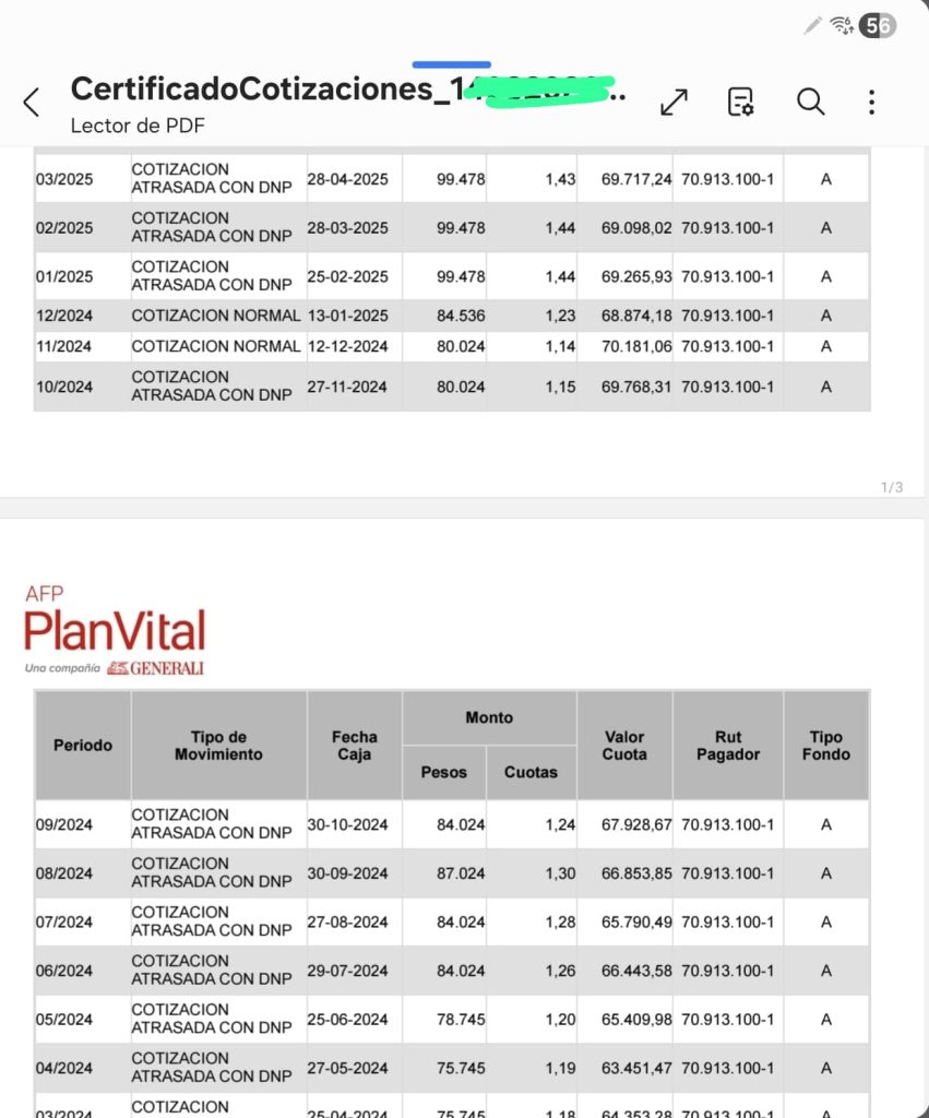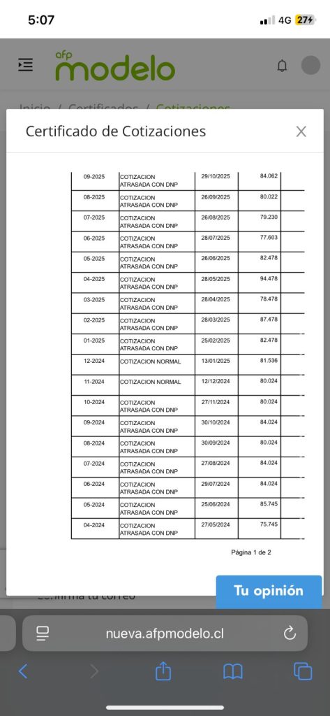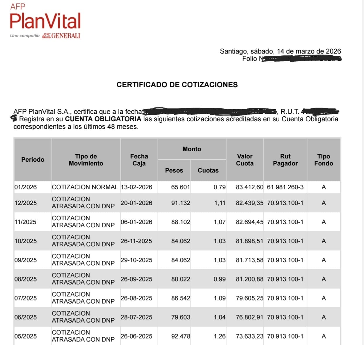 En conversación con nuestro medio, dos funcionarios —quienes pidieron mantener en reserva su identidad— mostraron cartolas previsionales de AFP donde se evidenciaría que la corporación declaró las cotizaciones previsionales, realizó el descuento en los sueldos, pero no efectuó el pago correspondiente a las AFP.
