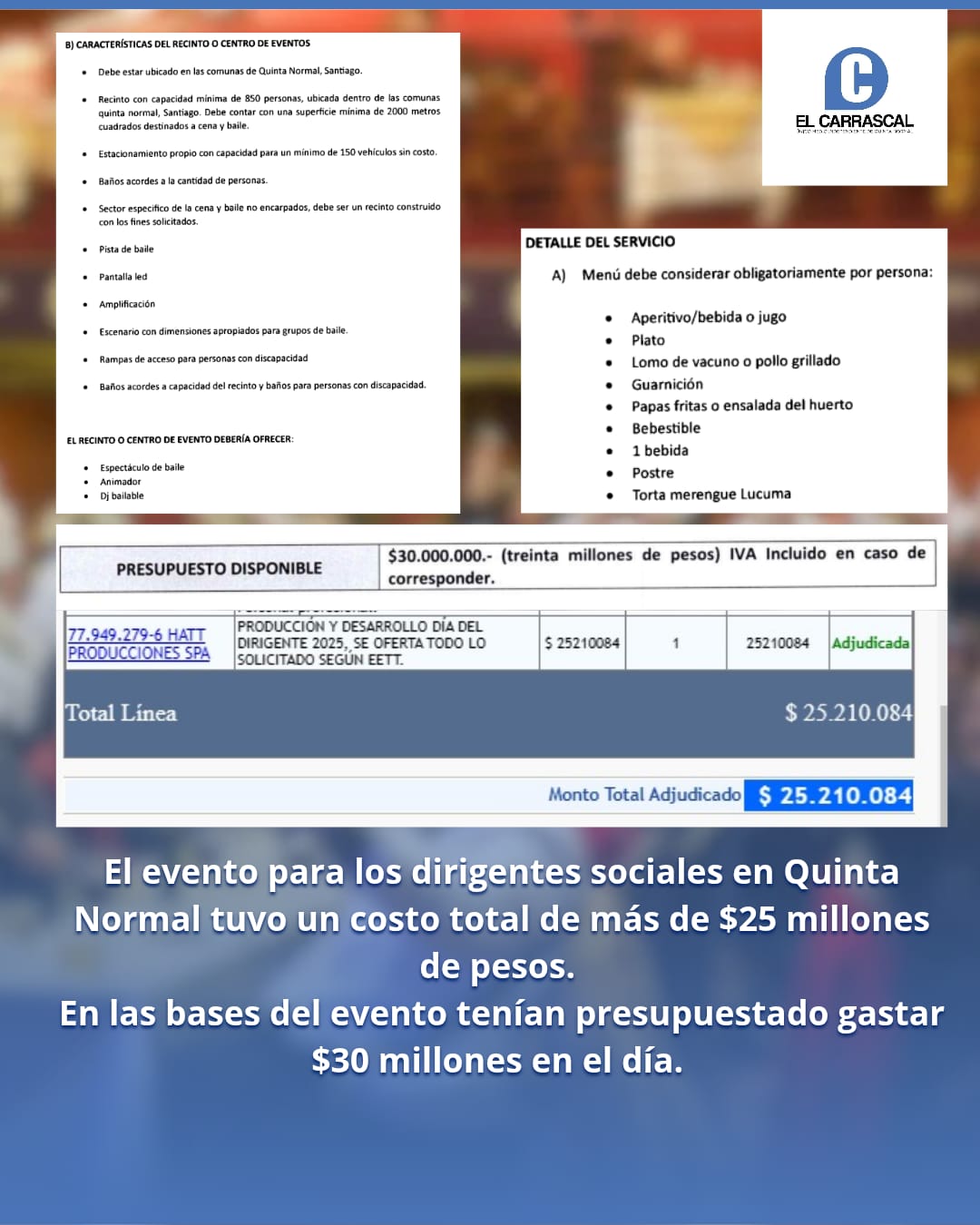 Según consta en el portal de Mercado Público, la producción del evento fue adjudicada mediante licitación pública a la empresa HATT PRODUCCIONES SPA, por un monto total de $25.210.084. El contrato incluyó servicios de producción, banquetería, ambientación, animación y logística del evento.